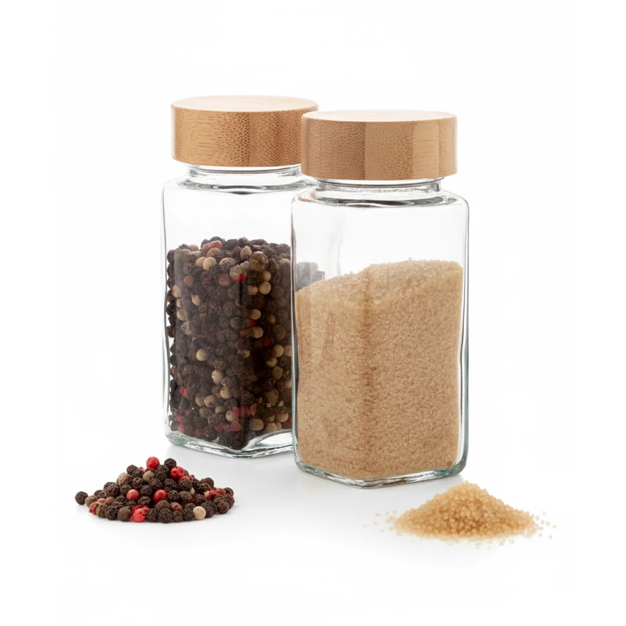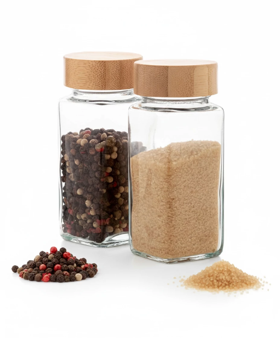 A kiváló minőségű, 120 ml-es üveg fűszertartók tökéletesek kedvenc fűszerei tárolására, miközben a természetes bambusz fedél légmentesen záródik, megőrizve az aromákat és a frissességet.