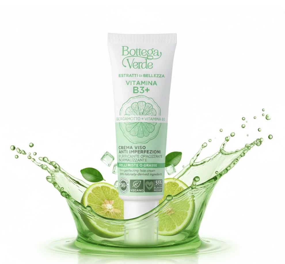Az Estratti di Bellezza Bergamott és B3-vitamin tartalmú arckrém egy frissítő koktél, amelyet kifejezetten a tökéletlenségekre és fényesedésre hajlamos, vegyes vagy zsíros bőr kezelésére fejlesztettek ki. A 96%-ban természetes eredetű összetevőkből álló formula normalizálja a faggyúkiválasztást, tisztítja a pórusokat és segít az egyenletesebb, frissebb arcszín elérésében.