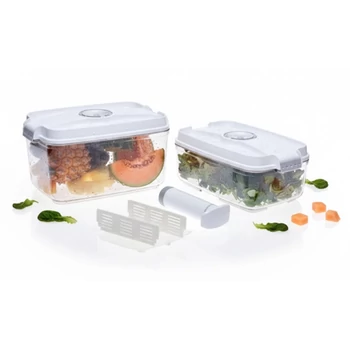 Status szett dobozban (2 db fehér vákuumtároló doboz:3L+4,5L+2db csepegtető tálca+1 db kézi pumpa)