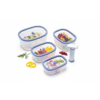Status Fresko Polipropilén vákuumtároló szett edzett üveg tetővel ( Lila 0,5 L + 0,9 L + 1,4 L + 2,3 L ) + 1 db kézi vákuumpumpa