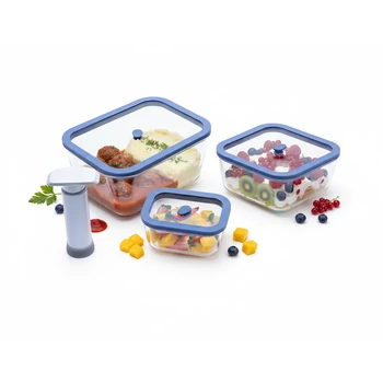 Status Viva boroszilikát üveg vákuumtároló 4 részes szett ( Lila 0,5 L + 1,4 L + 2,6 L + kézi vákuumpumpa)