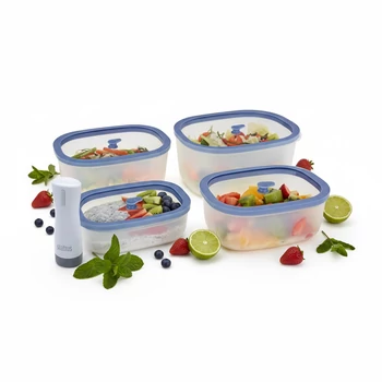Status Fresko Polipropilén vákuumtároló szett edzett üveg tetővel ( Lila 0,5 L + 0,9 L + 1,4 L + 2,3 L ) + 1 db BVP-50 akkumulátoros vákuumpumpa