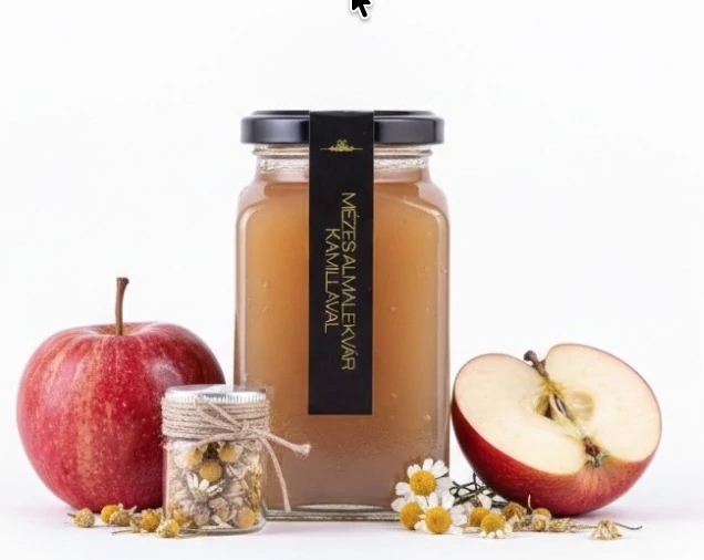 alma, cukor, méz, kamillavirág, pektin, citromsav