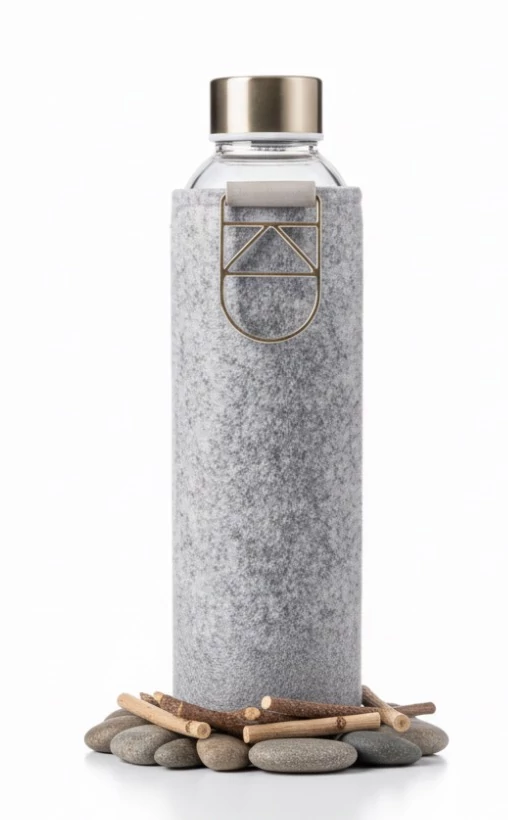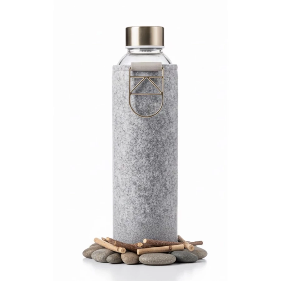 Egy szilárd és tartós üvegkulacs a kézzel készült puha filc borítás ölelésében.