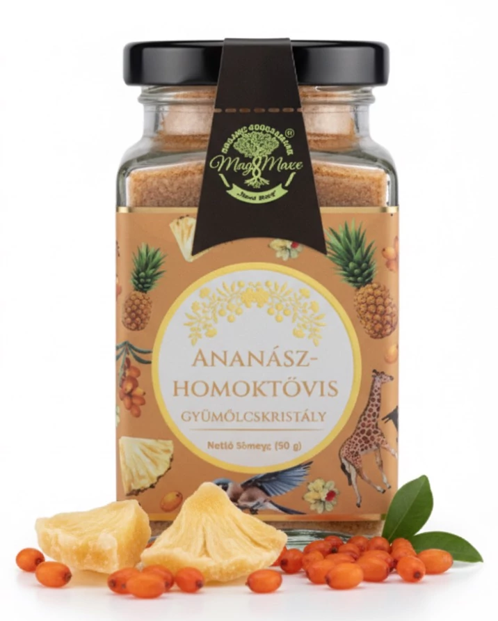 ananász, homoktövis, maltodextrin (természetes csomósodásgátló GMO-mentes kukoricából)
