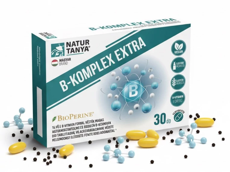 A Natur Tanya® B-KOMPLEX EXTRA 14 féle B-vitamin formát koncentrál, köztük magas hatóanyagtartalmú és újgenerációs bioaktív B-vitaminokat, valamint természetes növényi kivonatokat, mint a sáfrányos szeklice virág és a 9 világszabadalommal védett felszívódást elősegítő BioPerine® (fekete bors) kivonat1. A Natur Tanya® B-KOMPLEX EXTRA ideális azok számára, akik B-vitamin beviteli szükségletüket nagy mennyiségű B-vitaminokkal szeretnék pótolni. Különösen ajánljuk az idegrendszer támogatásához, a feszült, túlterhelt, stresszes hétköznapokhoz, sportolóknak, az idősebb korosztálynak (akinél a felszívódás csökkent mértékű lehet), nemtől függetlenül nőknek és férfiaknak egyaránt.