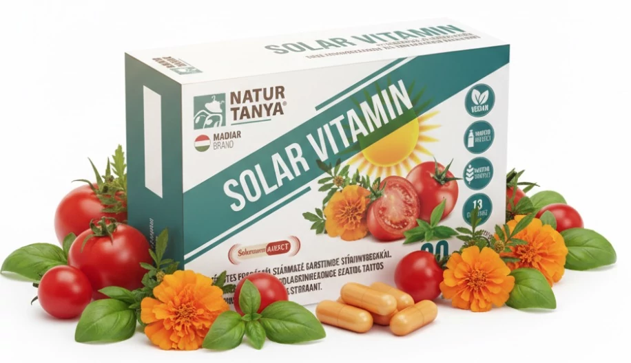 A 13 komplex összetevőt koncentráló Natur Tanya® SOLAR VITAMIN-t mindazok számára ajánljuk, akik napozás nélkül szeretnék bőrüket sötétebb és egészségesebb pigmentációhoz juttatni, vagy szoláriumozás és napozás mellett, tartós barna bőrszínt elérni. Az összetevők fokozzák a bőr és szemek védelmét és támogatják a bőr és szemek egészségét a károsító UV sugarak ellen.
