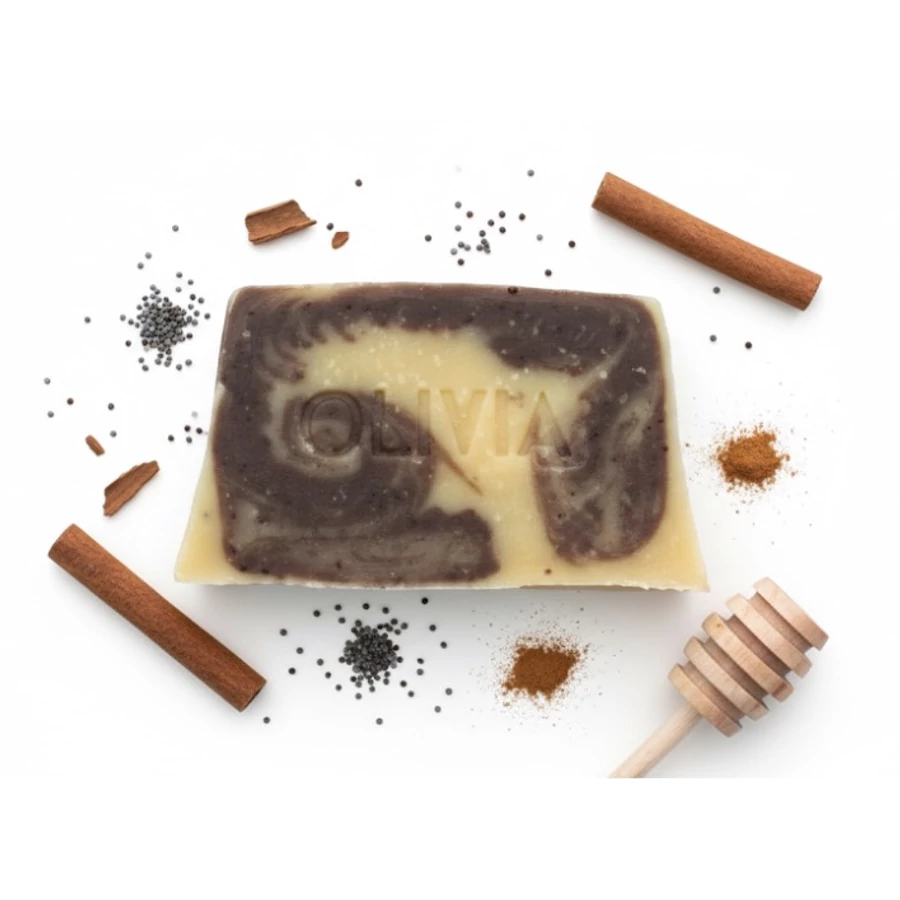 A szappanban található mákszemek segítenek eltávolítani az elhalt hámsejteket, így biztosítva bőröd folyamatos megújulását és a selymesen puha bőr élményét.
