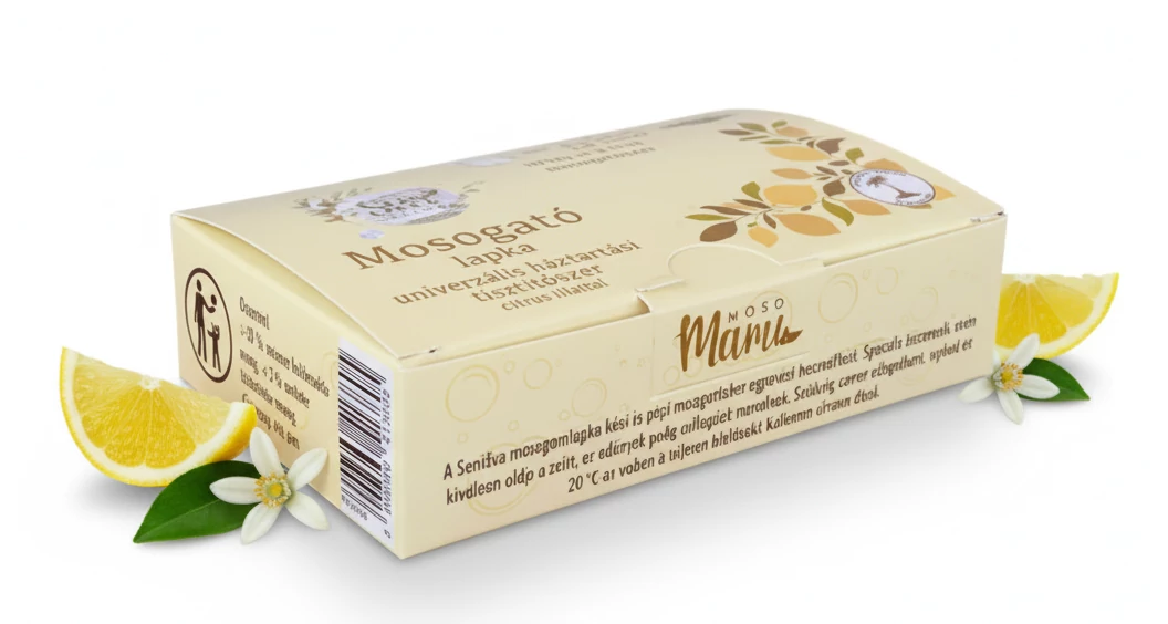 MI EZ PONTOSAN? Univerzális, tömény tisztító tenzidet és némi illatot tartalmazó, lap formájú háztartási tisztítószer friss citrom illattal.