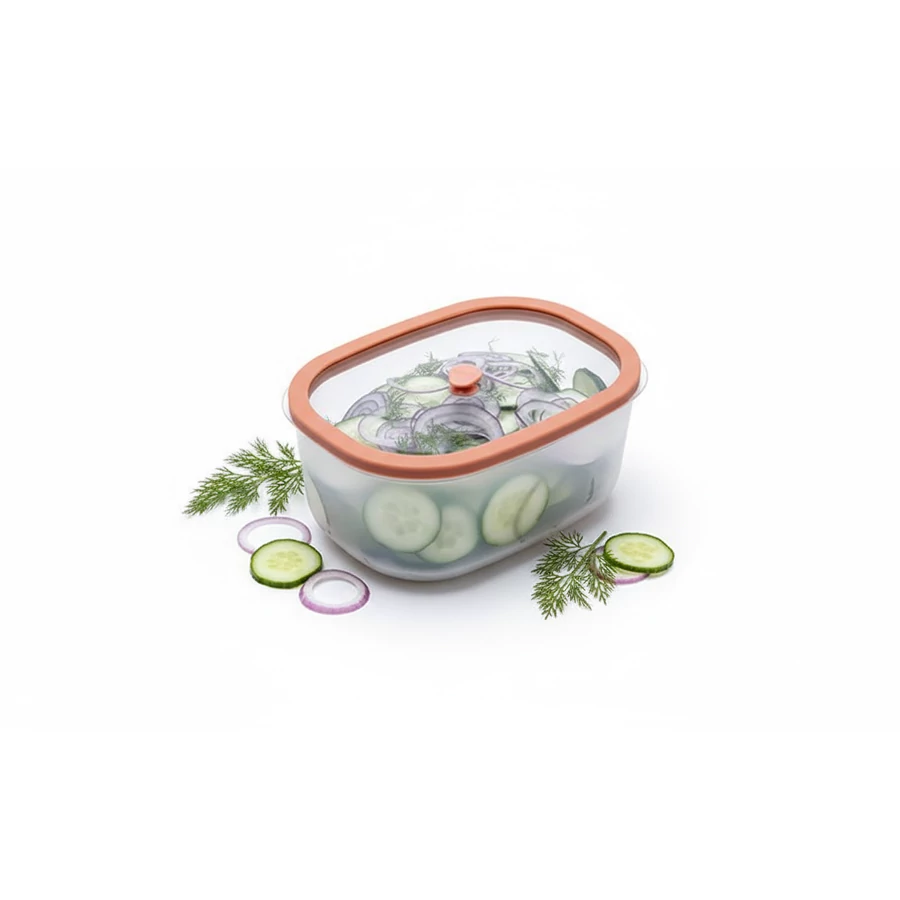 Vákuumban az élelmiszer akár négyszer tovább marad frissebb .Ezenkívül az aromák nem terjednek ki a tartályon kívülre.