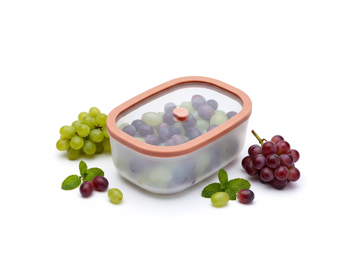 Vákuumban az élelmiszer akár négyszer tovább marad frissebb .Ezenkívül az aromák nem terjednek ki a tartályon kívülre.